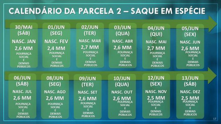 “A Caixa reforça que não é preciso madrugar nas filas. Todas as pessoas que chegarem nas agências durante o horário de funcionamento, das 8h às 14h, serão atendidas. Elas vão receber senhas e, mesmo com as unidades fechando às 14h, o atendimento continua até o último cliente. O banco fechou parceria com cerca de 1.200 prefeituras em todo o país para reforçar a organização das filas e manter o distanciamento mínimo de dois metros entre as pessoas”, informou a Caixa, em nota.