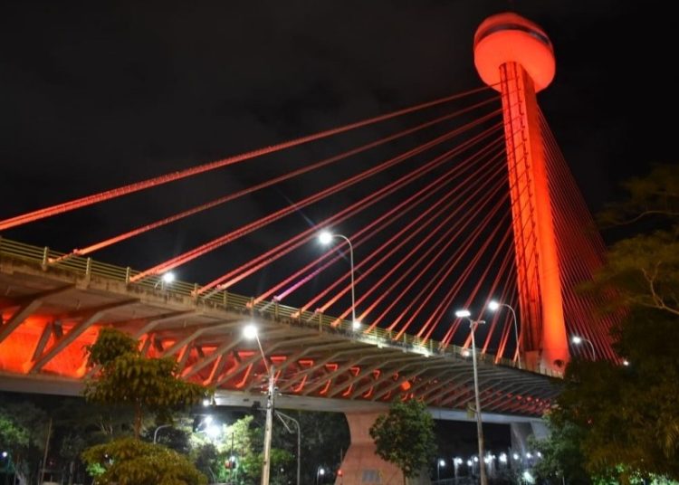 A Ponte Estaiada João Isidoro França ganha iluminação especial desta quinta-feira (14) até o dia 23 de março, em alusão ao Programa Municipal contra a Tuberculose, desenvolvido pela Fundação Municipal de Saúde (FMS).