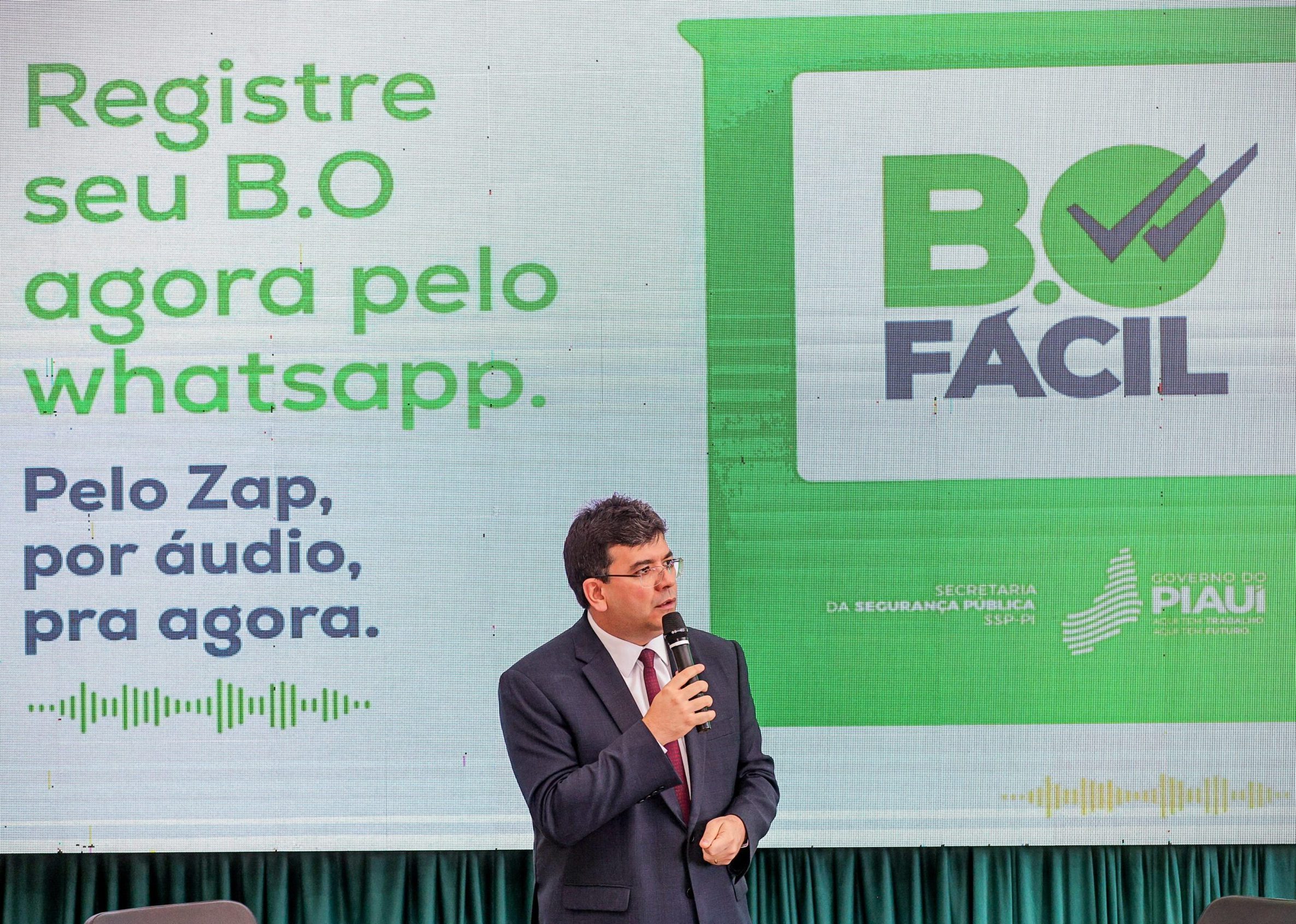 O governador Rafael Fonteles lançou, nesta segunda-feira (30), o primeiro serviço do Brasil de registro de boletim de ocorrência (BO) pelo WhatsApp, o BO Fácil. A plataforma permite ainda que o cidadão faça denúncias anônimas e até acione o número 190. A ferramenta foi apresentada em solenidade no Espaço Piauí Gov Tech, no Centro de Teresina.
