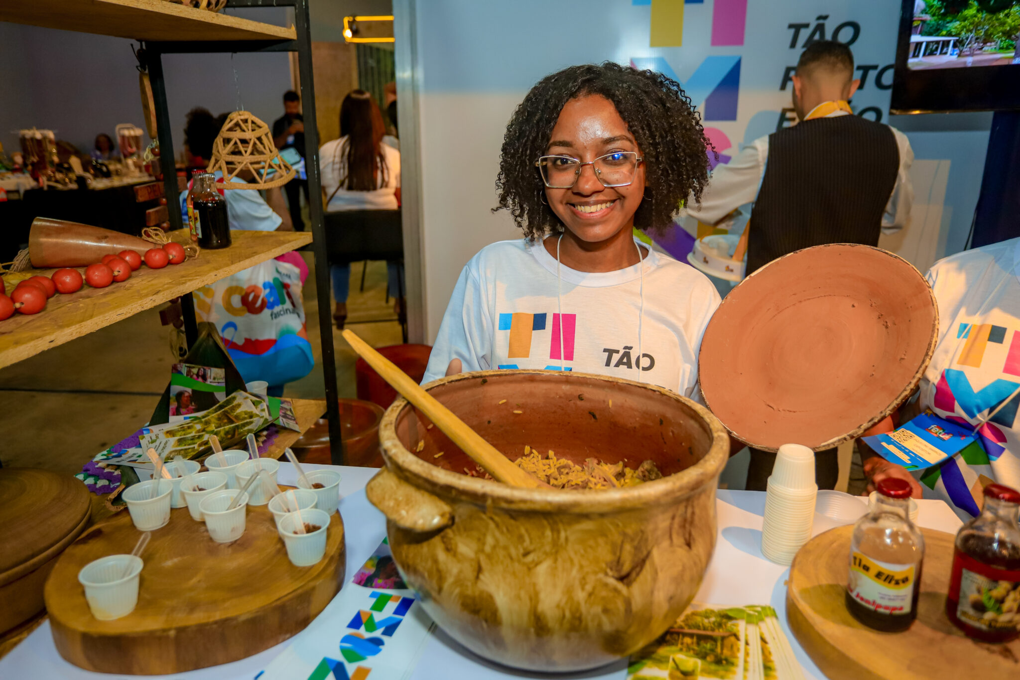 A gastronomia também ganha destaque no stand, com a tradicional galinha caipira sendo oferecida para degustação, proporcionando uma experiência autêntica dos sabores da região.